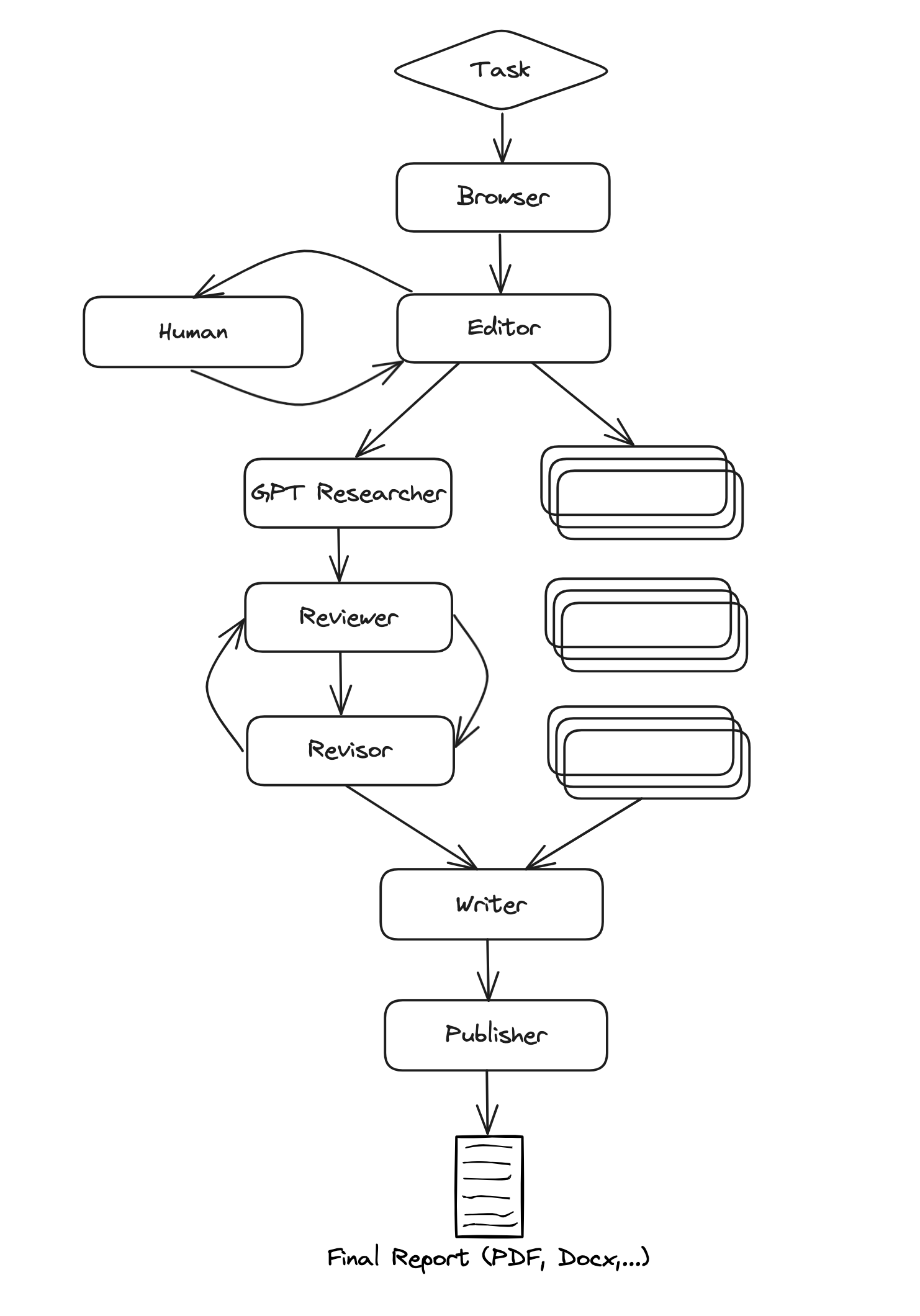 - Writer: Compiles and writes the final report.