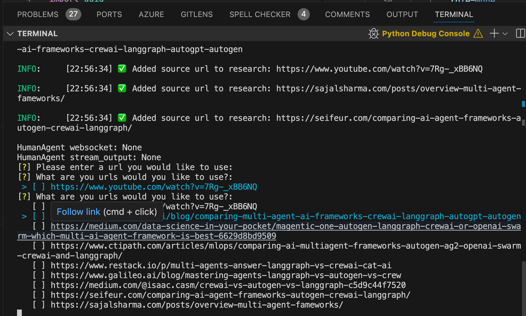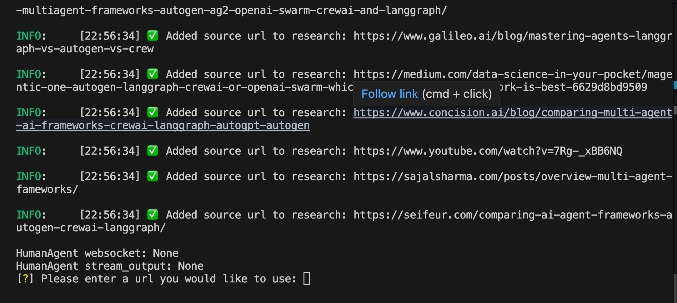 For now to customise GPT Researcher, I’ve introduced features to triage sources before including them in reports. A human in the loop aspect where, users can review URLs and add useful links, improving report quality and relevance. This could also be applied to other agents like Report mAIstro., below is my example applied to GPT Researcher, running via CLI.